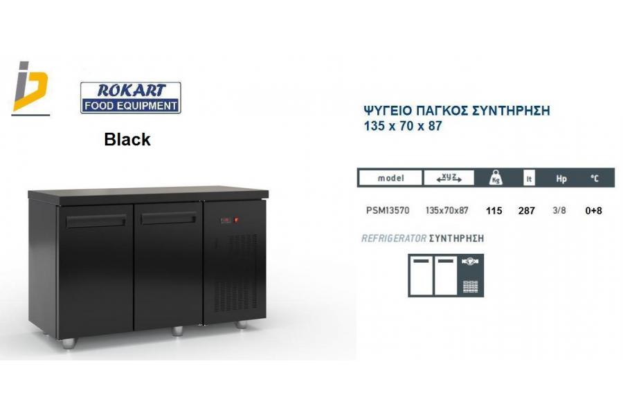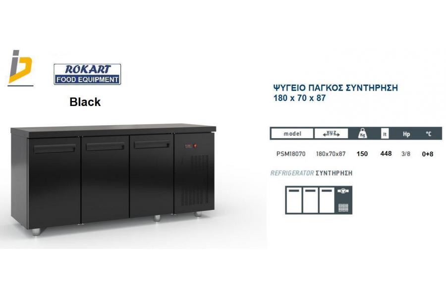 Ψυγείο πάγκος Συντήρησης μαύρου χρώματος με καπάκι inox με ενσωματωμένο ψυκτικό μηχάνημα Σειρά 70