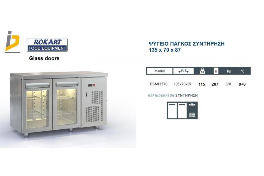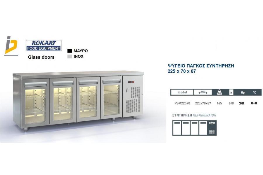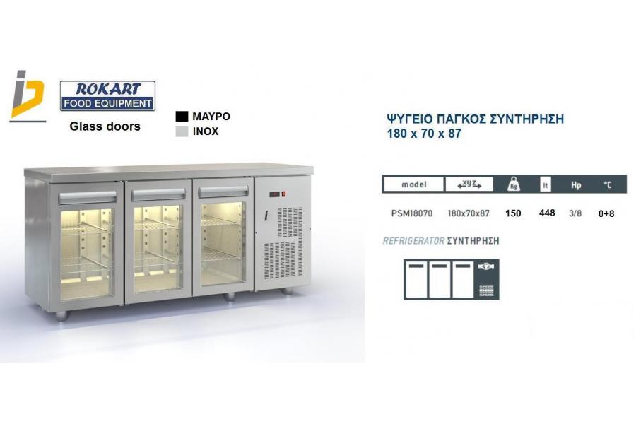 Ψυγείο πάγκος Συντήρησης με γυάλινες πόρτες με ενσωματωμένο ψυκτικό μηχάνημα Σειρά 70